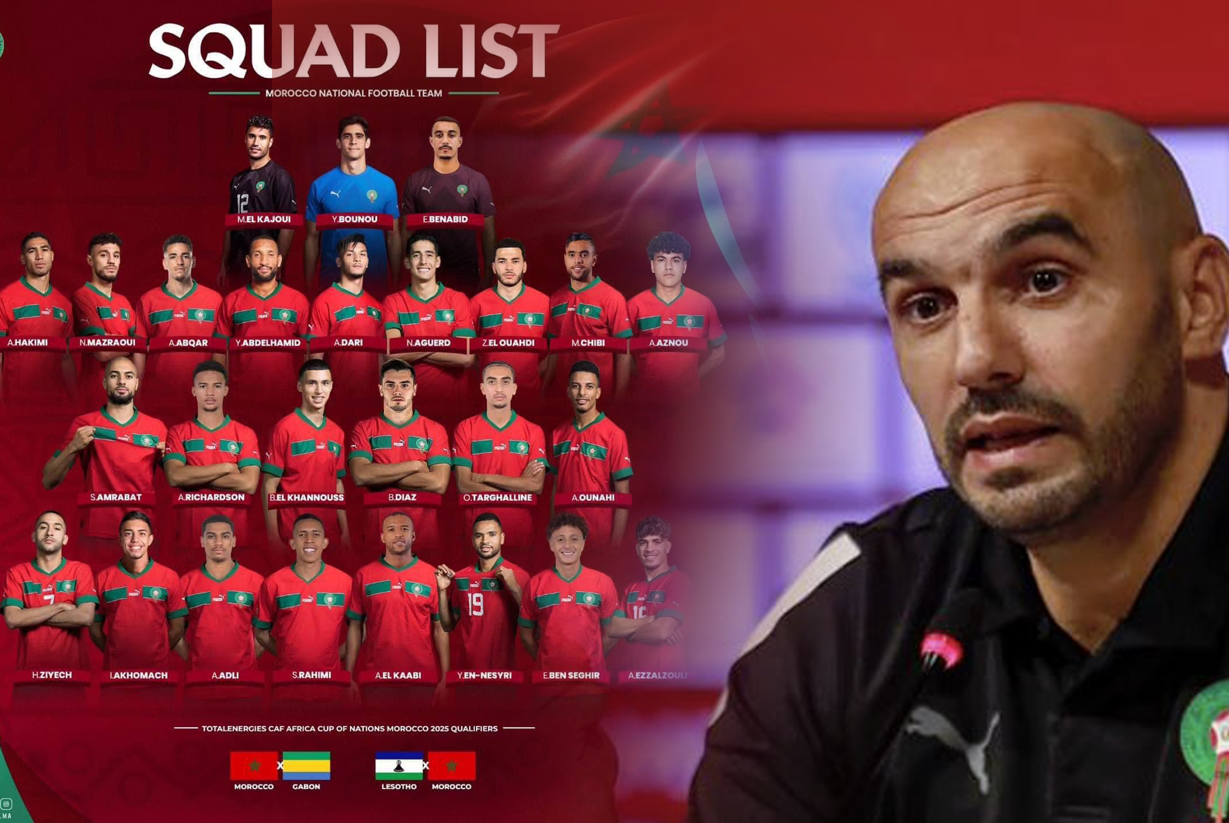 الركراكي يكشف عن لائحة المنتخب الوطني ضد الغابون وليسوتو