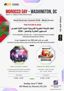 تعلن اللجنة المنظمة لفعالية Morocco Day – Washington, DC عن الإطلاق الرسمي لبرنامج دورة 2026، والتي ستأتي هذه السنة في إطار استثنائي يجمع بين الاحتفال الثقافي والرؤية الاقتصادية والتواصل المجتمعي، وذلك ضمن برنامج متكامل سيتم تنظيمه على مرحلتين رئيسيتين.
